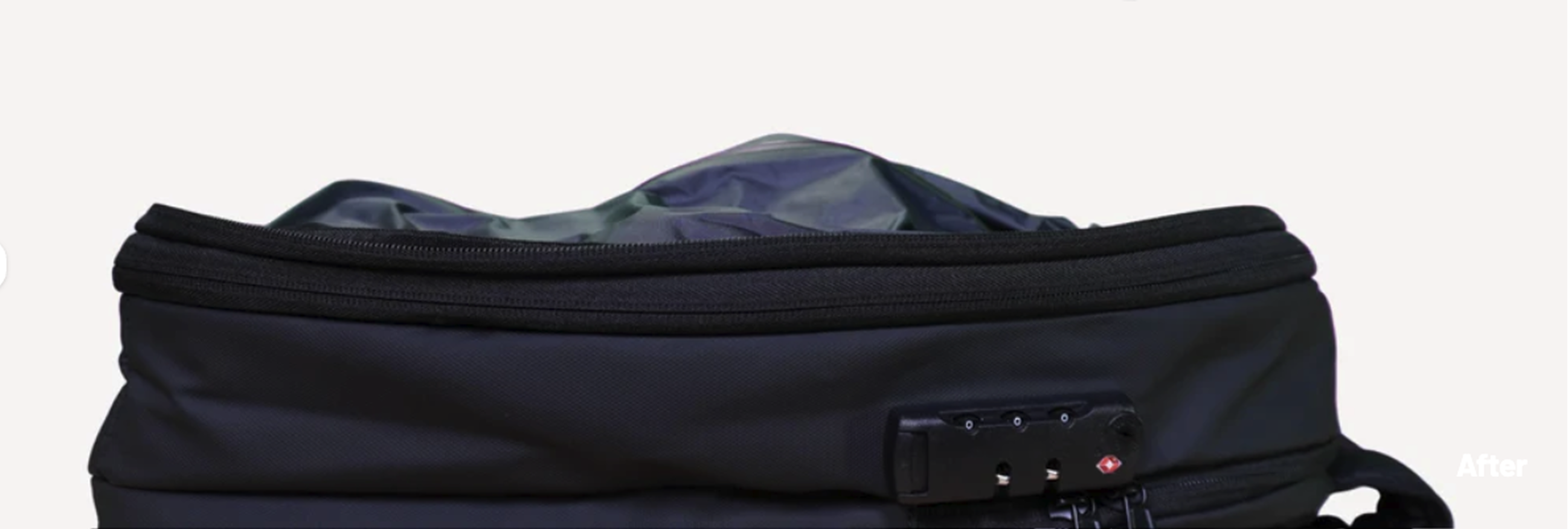 Læg det, du ønsker at komprimere, ned i taskens vakuumrum. - Luk vakuumposen helt tæt